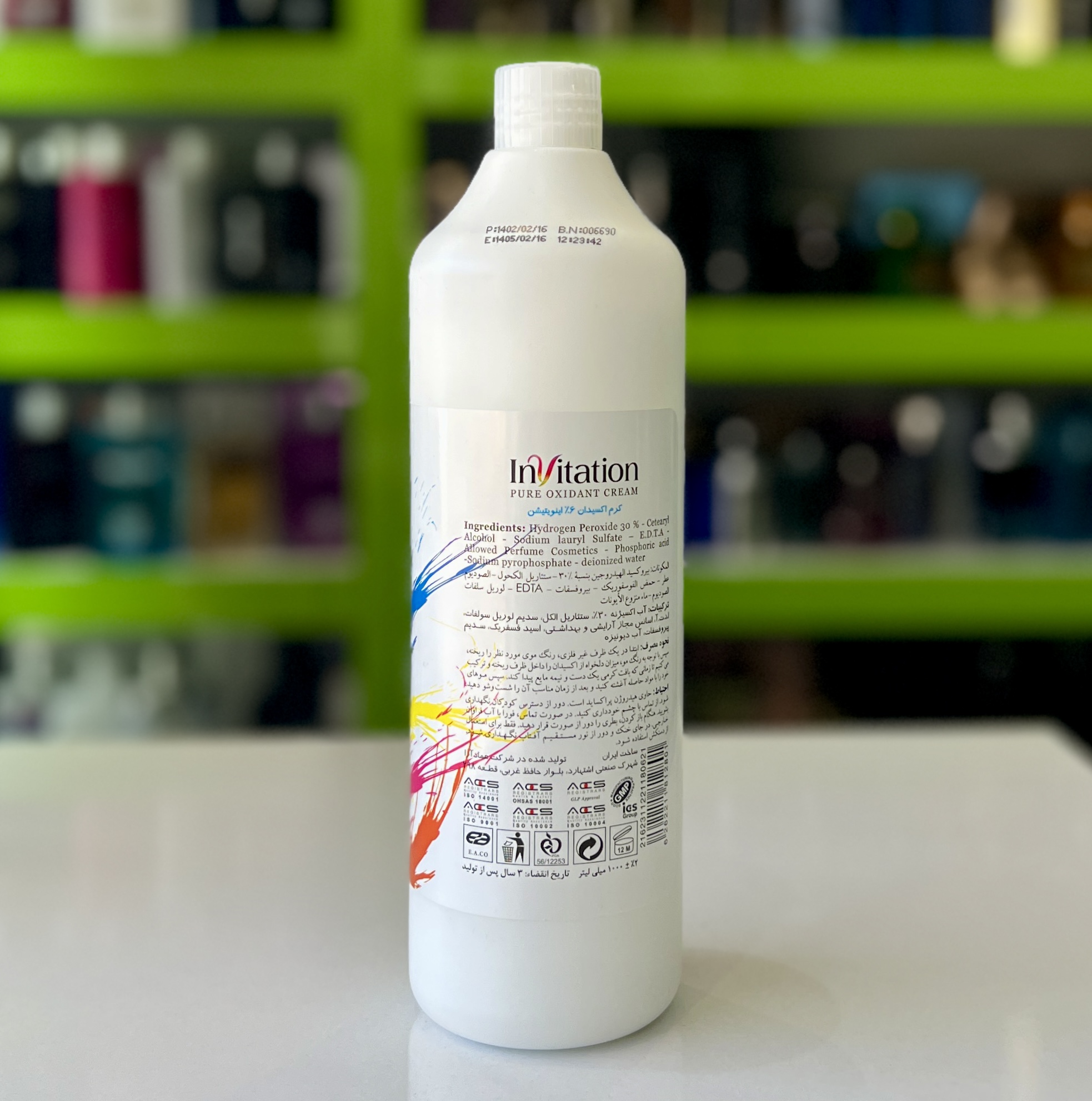 دستهبندی: محصولات تخصصی سالنبرند: اینویتیشنحجم: ۱۰۰۰ میلی لیتربافت محصول: کرمفرموله شده در کشور: ایرانقدرت اکسیدان : ۶٪ترکیبات : آب اکسیژنه ۳۰٪ / آب دیونیزه / سدیم پرو فسفات / اسید فسفریک و…انقضا : 1405/02/16نمایش بیشتر