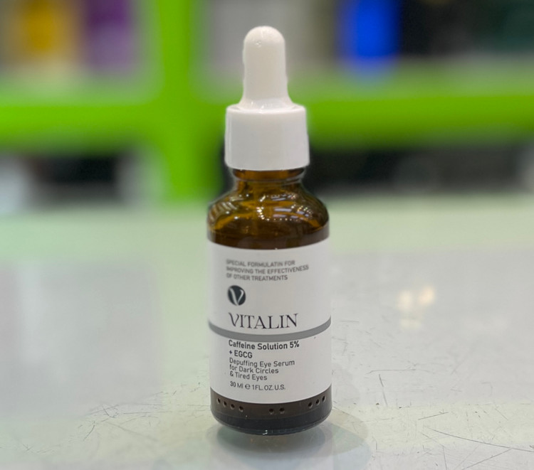 سروم دور چشم کافئین ویتالین مقادیر بالایی از کافئین و آنتیاکسیدان را دارا بوده و برای رفع پُف و تیرگی زیر چشم از آن استفاده میشود.